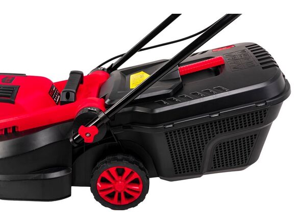 Модель укомплектована травосборником объемом 35 л, он обеспечивает продолжительную работу без необходимости частых перерывов для его опустошения.