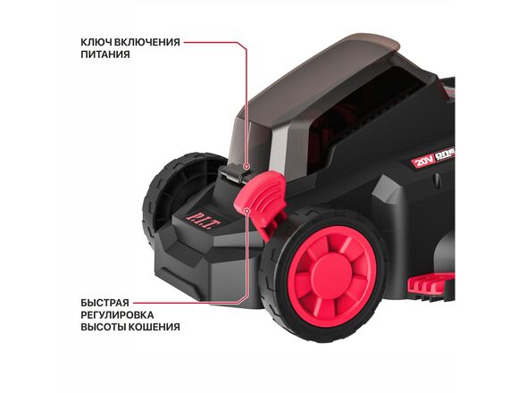 Аккумуляторная газонокосилка P.I.T. PLM20H-330A/1 используется для борьбы с растительностью на дачных участках.