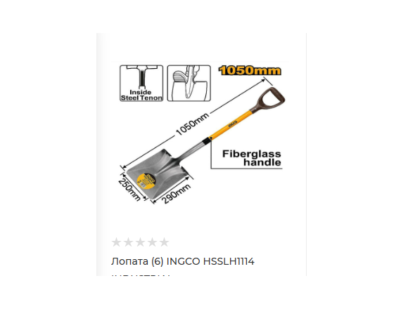 Лопата совковая INGCO INDUSTRIAL 1050*250*290*1,8мм черенок 32мм стекловолокно с ручкой
