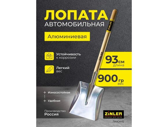 Лопата ZINLER авто алюминиевая совковая с дер. черенком Z1.16AH12 (1/5)