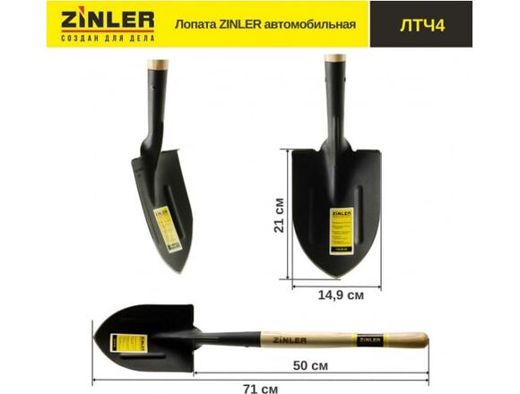 Автомобильная лопата с деревянным черенком ZINLER Z1.9H4 – универсальная модель, подойдет для хранения в багажнике автомобиля, туристических походов и садоводства.
