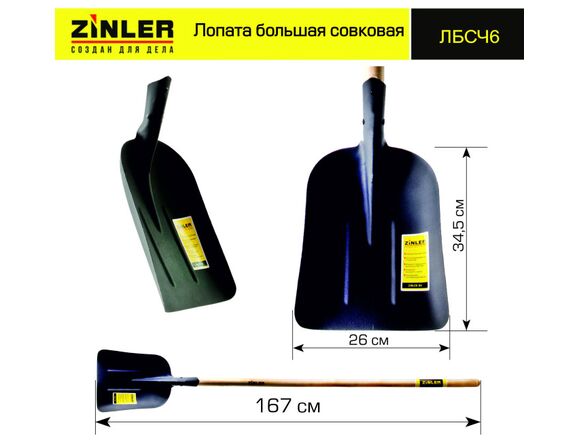 Лопата ZINLER большая совковая с деревянным черенком 1400 мм Z1.5H6 (1/5)