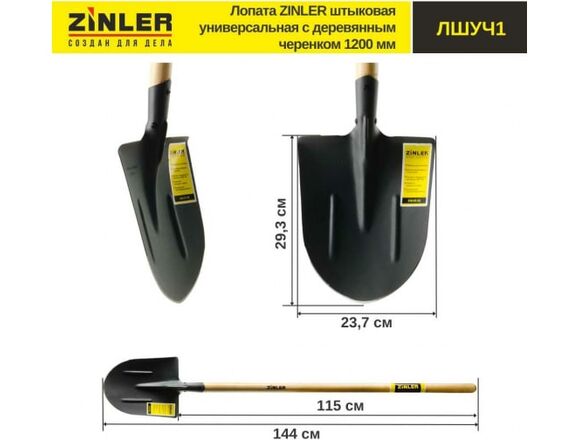 Универсальная штыковая лопата с деревянным черенком ZINLER 1200 мм Z1.2H1 – незаменимый инвентарь для работы с грунтом на садово-огородном участке или строительной площадке.