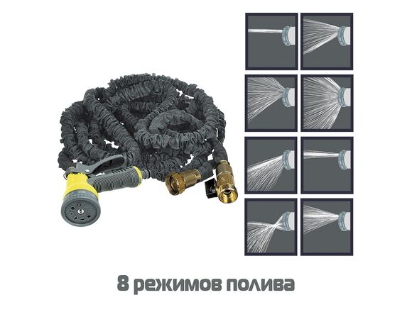 Шланг для полива растягивающийся INBLOOM 7,5-22м, АЛЮМИНИЙ / TPE / ПОЛИЭСТР, пистолет 8 реж(1/12)