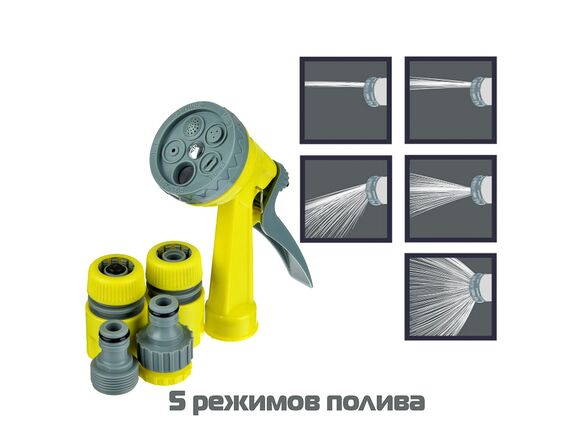 Набор для полива INBLOOM, (пистолет 5 реж- 1шт,1/2" коннектор- 2шт, 1/2"-3/4" штуцер-1шт)ПП (6/48)