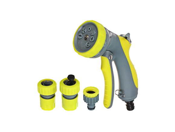 Садовый набор для полива INBLOOM пистолет 8 режимов, переходник 2 шт, штуцер 1/2'-3/4' 161-021 предназначен для садовых работ.