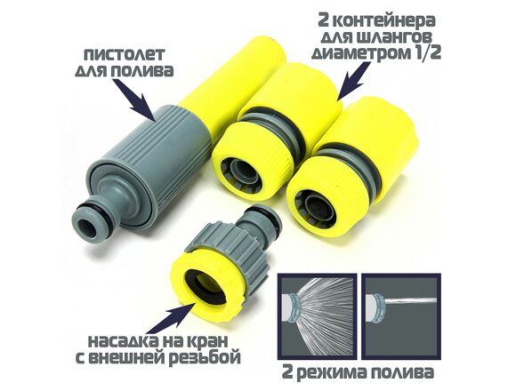 Набор стартовый для подключения шланга d1/2",INBLOOM (коннектор-2шт,штуцер-1шт,наконечник-1шт)(12/96