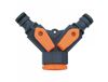 Разветвитель на кран двухканальный выполнен из высокопрочного пластика. Присоединительный размер ½" - ¾"