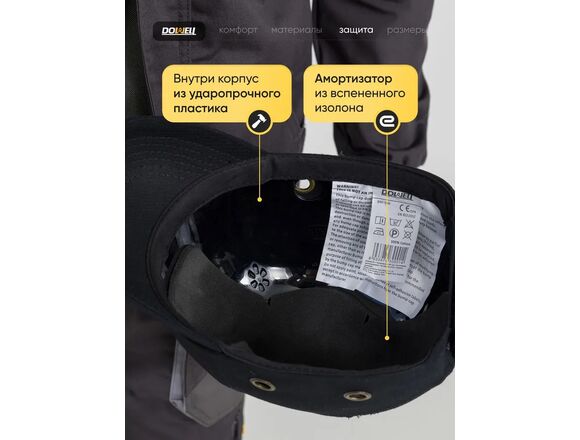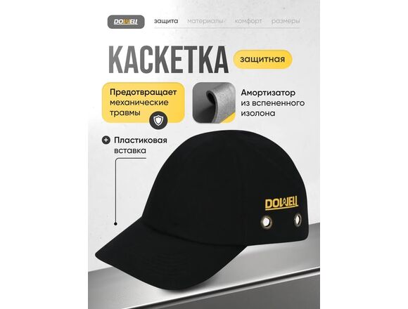 Рабочая каскетка защитная DOWELL предназначена для защиты головы от ударов о твердые и неподвижные предметы, защищает от поверхностных ран.
