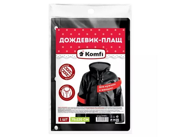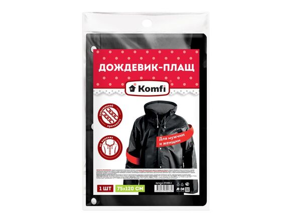 Дождевик-плащ KOMFI EVA, черный, на кнопках, 110 мк