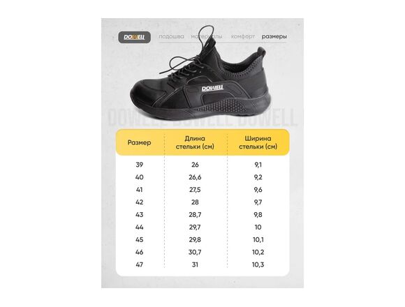 Полуботинки рабочие, DOWELL иск. кожа, кевл. стелька, чёрные, р-р 41