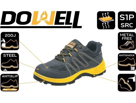 Полуботинки рабочие, DOWELL иск. кожа, сетка, стальн. стелька, чёрный/жёлтый, р-р 45