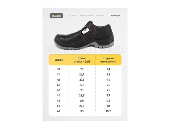 Сандалии рабочие, DOWELL натур. кожа, чёрные, р-р 45