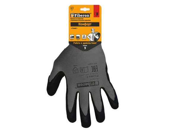 Перчатки FIBERON ГРАФИТ "Комфорт" полиэстер вспененное латексное покрытие, в и/у, 9(L) (12/120)