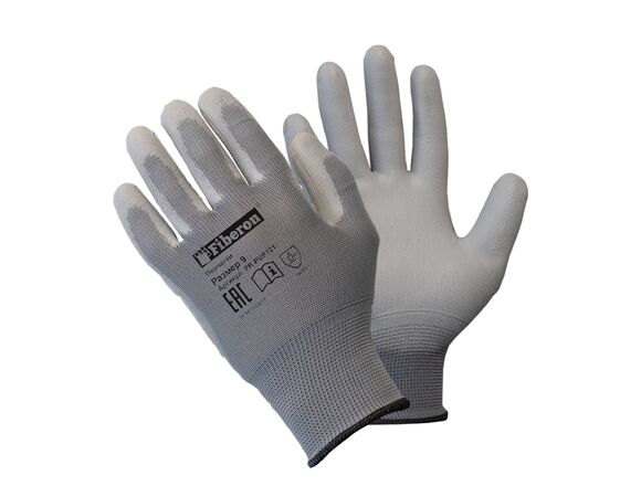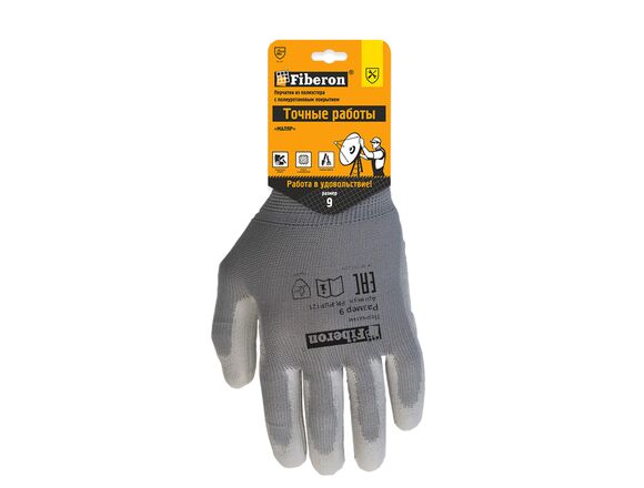 Перчатки FIBERON МАЛЯР "Точные работы", полиэстер, полиуретановое покрытие, в и/у, 9(L), серы