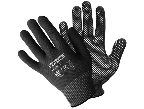 Перчатки FIBERON "Микроточка", полиэстер, ПВХ-точка, в и/у, 10(ХL), черные (12/120)