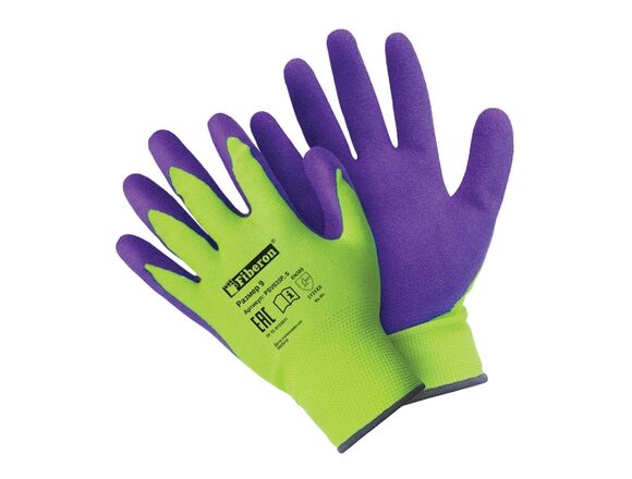 Перчатки FIBERON "МОНТАЖНИК СЭНС", полиэстер, покрытие Sandy Latex, в и/у, 9(L), Fiberon/