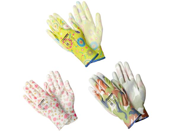 Перчатки FIBERON «Садовые работы», полиэстер, полиуретановое покрытие, разноцв, микс цветов №2, в и
