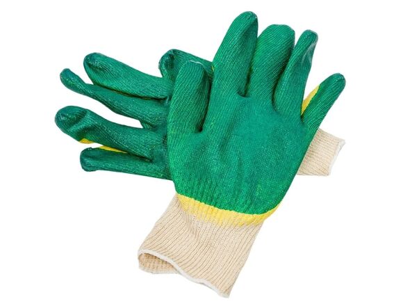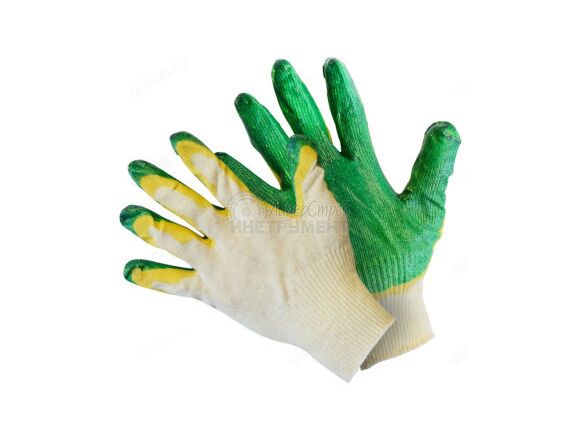 Перчатки FIBERON вязаные с двойным латексным покрытием зелено-желтым (10/200)