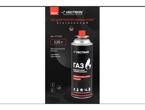 Газ для портативных плит "VECTRON" 220 гр (всесезонный) РОССИЯ (1/12/1512)