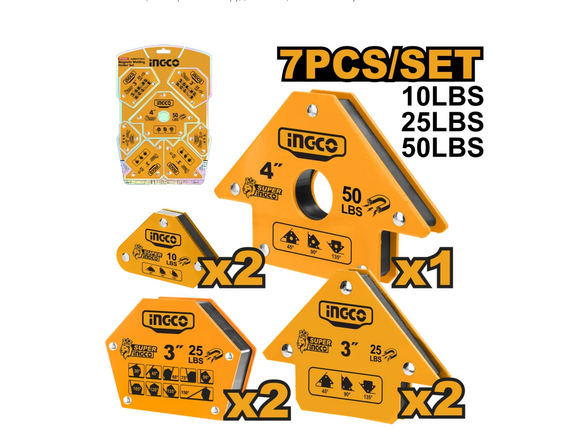 Магнитный сварочный угольник INGCO 7шт (4 трапеция + 3 стрела) (2/10)