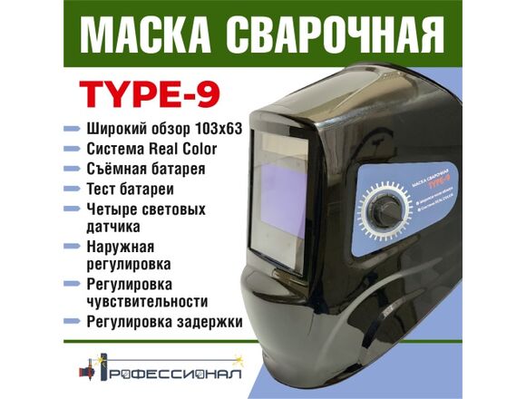 Маска сварщика "Хамелеон"ПРОФЕССИОНАЛ TYPE-9 103*63 DIN5/8 9/13 датчик-4шт сменная бат.REAL COLOR