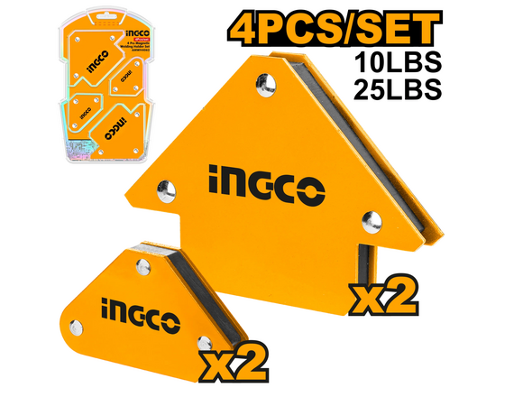 Магнитный сварочный угольник INGCO 4шт (2 трапеция мини + 2 стрела) (5/20)