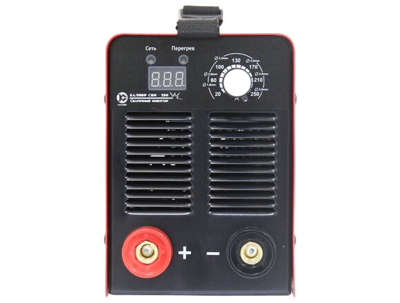 Сварочный инвертор Калибр СВИ - 250 00000065280 используется для сварки стальных металлоконструкций при помощи штучных электродов. Модель питается от обычной бытовой сети. Для инвертора подходят электроды различных материалов: рутиловые, базовые, нержавеющие и прочие. Расчетное время работы устройства: 5 минут работы - 5 минут перерыв. Потребляемая мощность составляет 4.6 кВт - этого достаточно для преобразования силы тока рабочей сети в диапазон 20-250 А. Устройство разработано для надежной сварки электродами диаметром до 5 мм. Переноска устройства удобна за счет наличия ремня. Допустимые условия работы для инвертора: влажность до 80%, температура от -10 до +40 градусов.